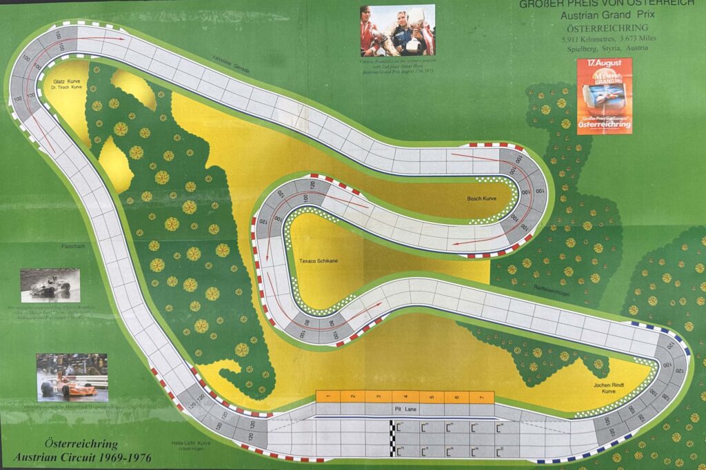 Comments: A fast narrow track with relatively quick corners. Go fast down the long front straight and keep going fast through the first corner and next straight. Start fast and stay fast. Passing on the wide front straight is easier than passing on the rest of the track. If you you see an opening take it before the door is closed.